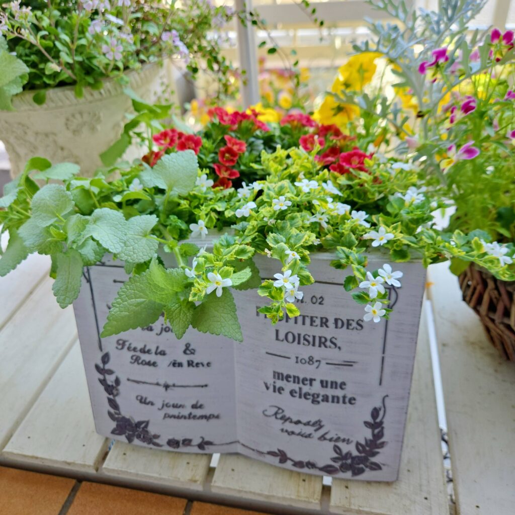 断食終了後、まだ断食祈りをすると決めていなかった時に買ったbook型の植木鉢に寄せ植えをしようと思い付きました。