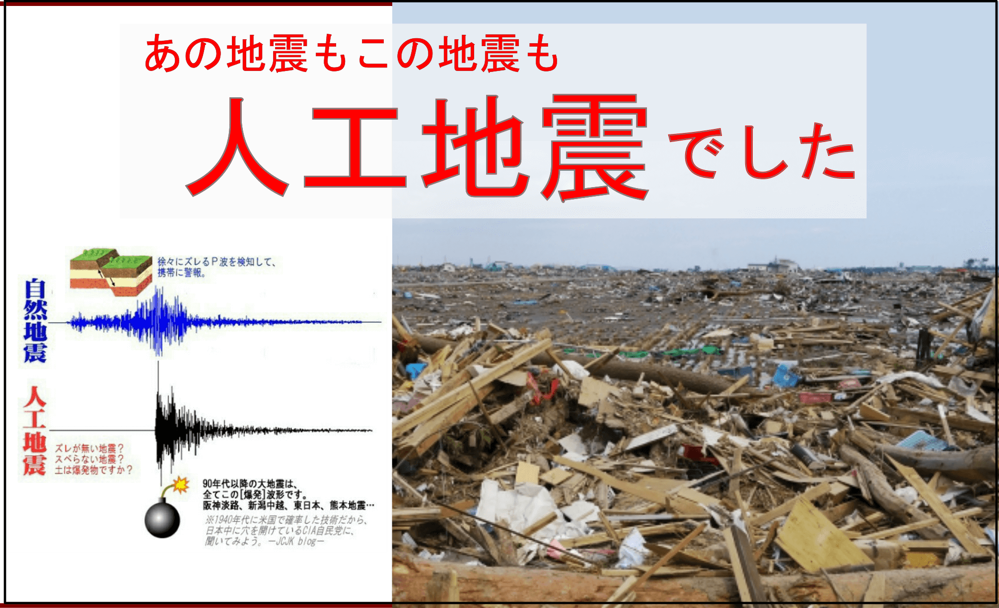 不謹慎に思われてしまうかもしれませんが、近年起きた大きな地震はほぼが人工地震であることが明らかになっています。